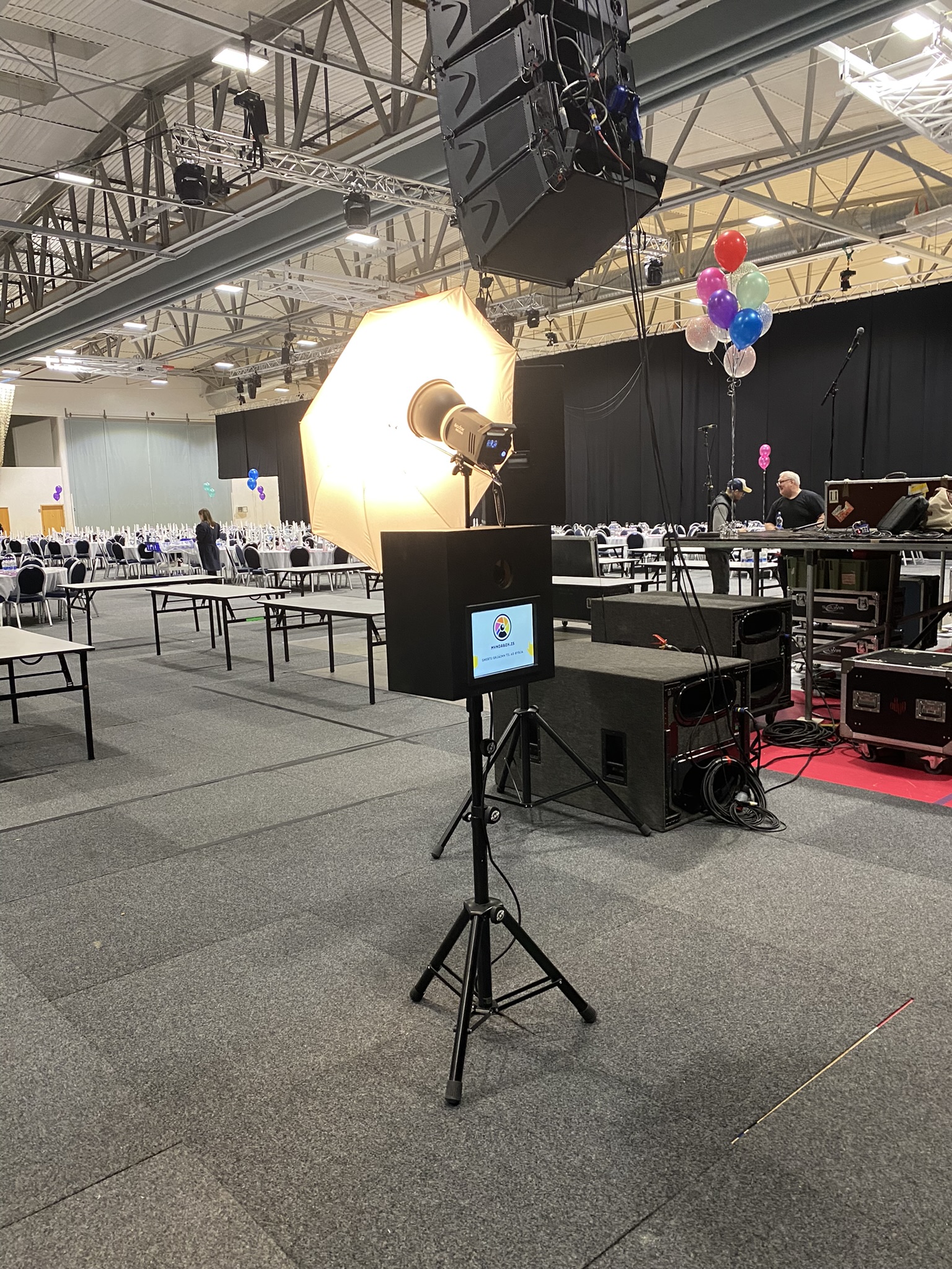 Uppsetning: Við höfum samband við leigutaka með góðum fyrirvara til að finna hentugan tíma fyrir uppsetningu. Yfirleitt hringjum við 1-2 dögum fyrir viðburð til að ganga frá tímasetningu. Sjálf uppsetningin tekur um klukkustund, þar sem við stillum myndaboxi upp, prófum búnaðinn og sjáum til þess að allt virki fullkomlega.